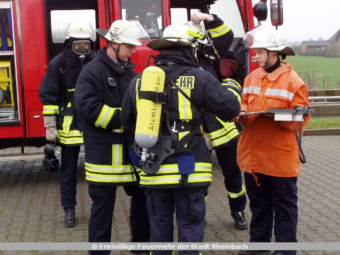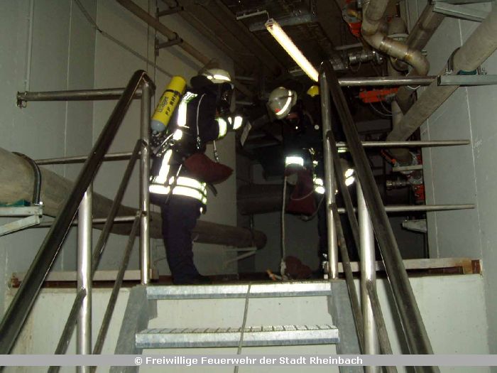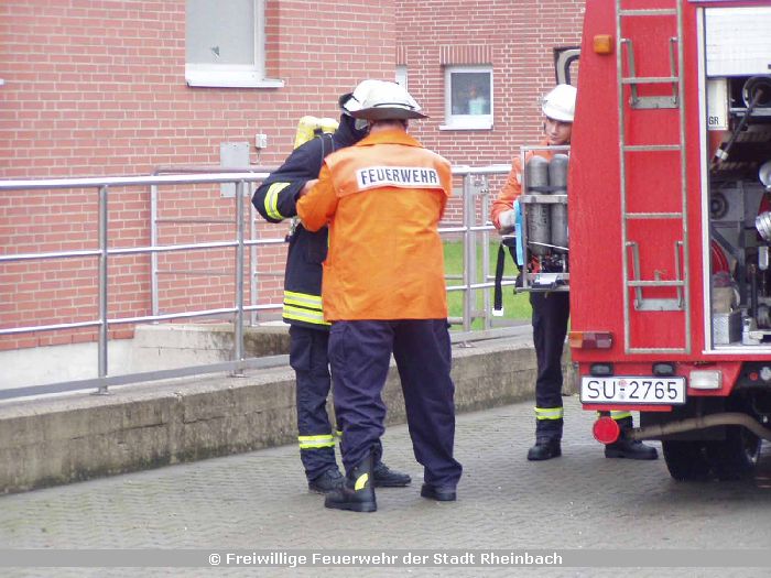 Am Samstagmorgen wird über die Leitstelle des Erftverbandes ein Brand im Betriebsgebäude für die Elektroanlage gemeldet. Ein Steuerschrank ist in Brand geraten, und 3 Personen werden vermisst. Die Leitstelle des RSK alarmiert die Züge III und IV der Freiwilligen Feuerwehr Rheinbach.