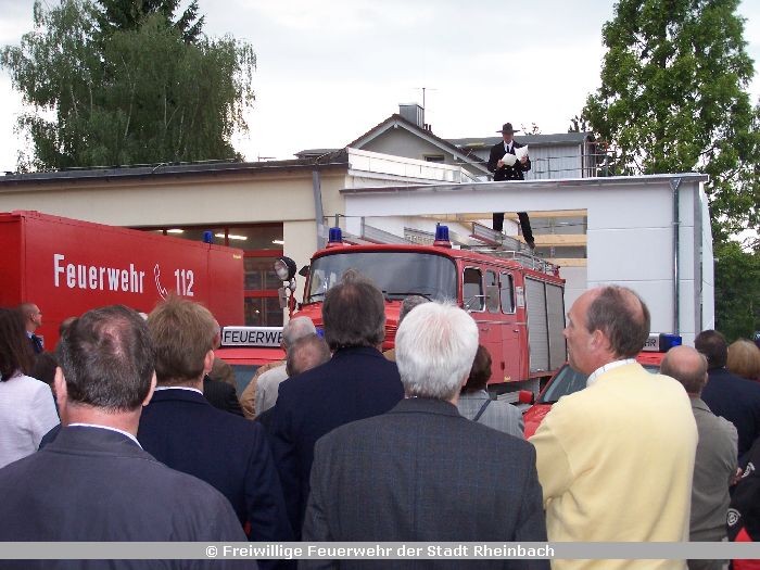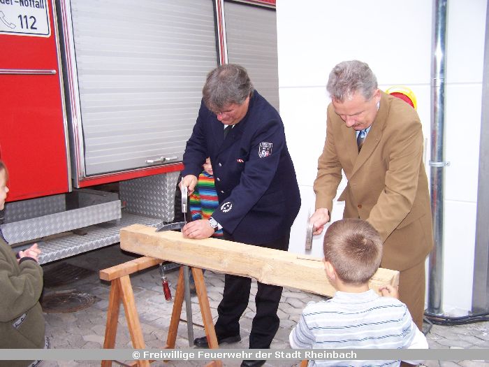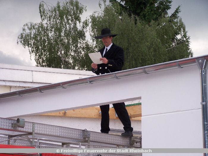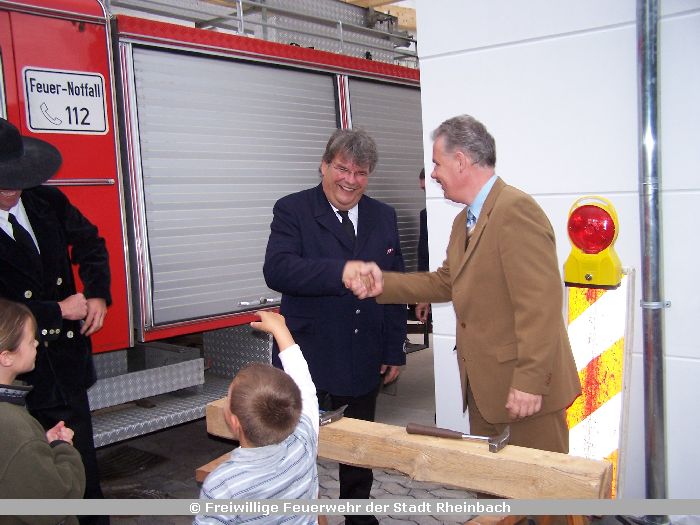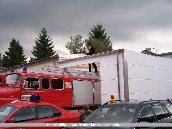 Zugleich fand das Richtfest für die neuen, größtenteils in Eigenleistung errichteten Fahrzeughallen zur Erweiterung der Feuerwache Rheinbach statt.