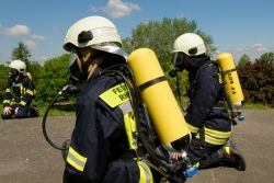 Zum Ende wurde es dann ernst: in der schriftlichen Prüfung wurden alle Themenfelder der vergangenen Unterrichtseinheiten theoretisch abgefragt. Danach fuhren alle Prüflinge auf die Atemschutzstrecke des Rhein-Sieg-Kreises nach Siegburg, um nachzuweisen, dass sie physisch und psychisch den Belastungen eines Atemschutzeinsatzes gewachsen sind.