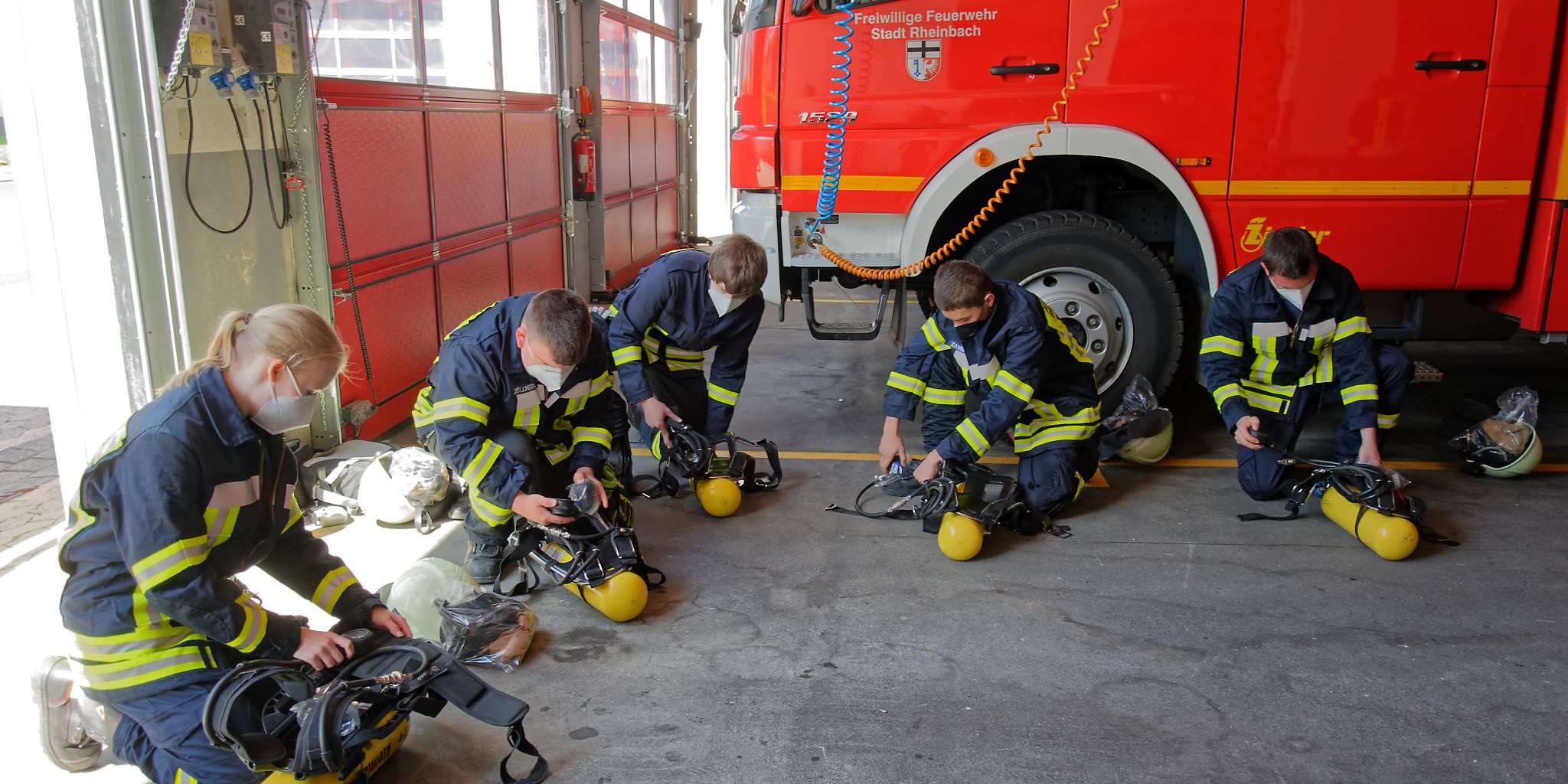 Mitte Mai wurden die Corona-Vorgaben so weit gelockert, dass die Freiwillige Feuerwehr der Stadt Rheinbach den praktischen Ausbildungsbetrieb wiederaufnehmen konnte. Und so wurde nach längerer „Corona-Pause“ ab dem 20. Mai ein Lehrgang zum Tragen von Atemschutzgeräten durchgeführt.