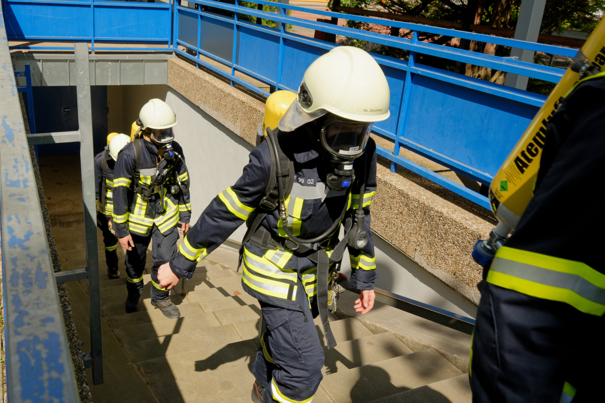 Von Grundlagen der Atmung, Zusammensetzung der Atemluft, technischen Kenntnissen über das Atemschutzgerät bis zu taktischen Prinzipien wurde ein weites Feld in der Ausbildung abgedeckt und von den Teilnehmenden über die drei Wochen des Lehrgangs hinweg gelernt und vertieft. Praktisch galt es dann, zunächst mit der ungewohnten Einschränkung von Sichtfeld und Bewegung durch die zusätzliche Ausrüstung klarzukommen und sich an die Belastung „unter Atemschutz“ heranzutasten.