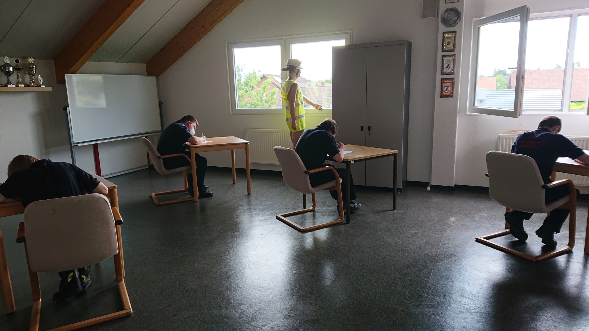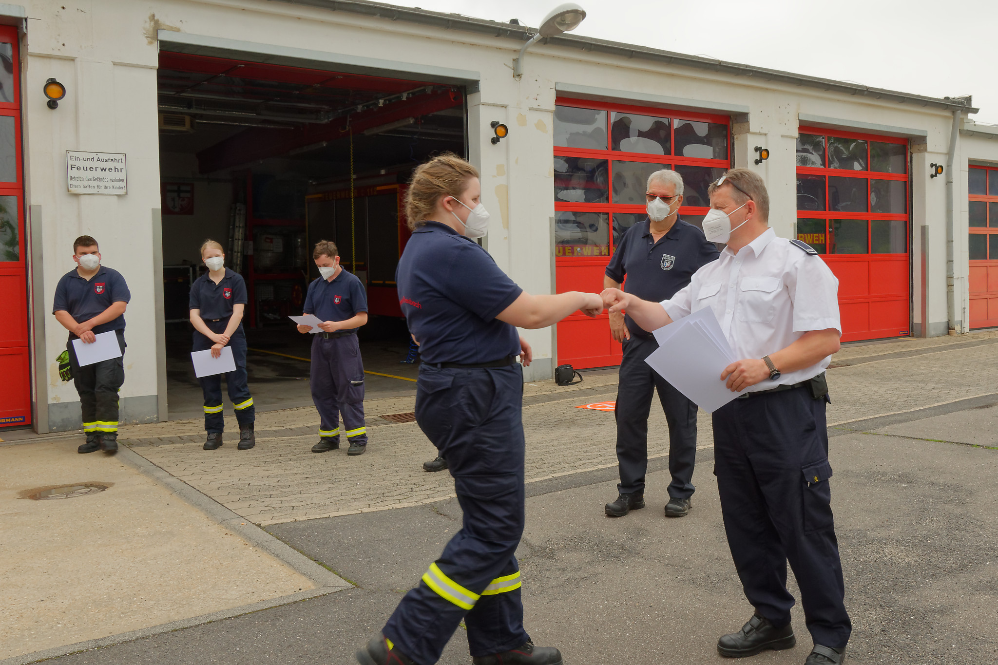 Für die praktische Ausbildung wurde ein eigenes Hygienekonzept erstellt und der Umgang mit den Atemschutzgeräten in Kleingruppen auf der Feuerwache in Rheinbach geübt. Die Theorieunterrichte fanden größtenteils virtuell in Videokonferenzen an mehreren Abenden statt.