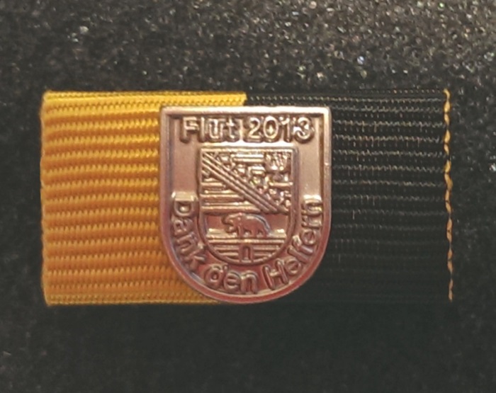 Am Mittwoch, dem 10.03.2015 übergab Bürgermeister Stefan Raetz im Rahmen einer kleinen Feierstunde die Fluthelfernadel 2013 des Landes Sachsen-Anhalt an die Feuerwehrangehörigen aus der Stadt Rheinbach, die in der Zeit vom 10.06. bis zum 14.06.2013 als Teil der IV. Bereitschaft des Regierungsbezirks Köln überörtliche Hilfeleistung beim Elbehochwasser leisteten.