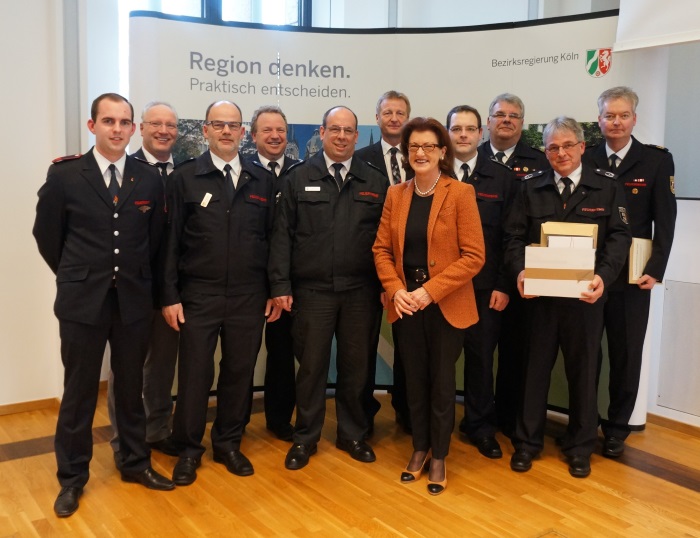 Der Ministerpräsident des Landes Sachsen-Anhalt, Reiner Haseloff, ehrte die Helfer mit der Fluthelfernadel 2013 des Landes Sachsen-Anhalt. Die Auszeichnungen wurden am 27.02.2015 einer Abordnung der Mitglieder der IV. Bereitschaft von Innenminister Ralf Jäger und Regierungspräsidentin Gisela Walsken übergeben. Kreisbrandmeister Dirk Engstenberg nahm gemeinsam mit sieben Vertretern der Feuerwehren und Hilfsorganisationen als Abordnung des Rhein-Sieg-Kreises die Ehrennadeln in Köln entgegen. Auf kommunaler Ebene sollten die Auszeichnungen dann an die Fluthelferinnen und Fluthelfer persönlich ausgehändigt werden - eine Aufgabe, die Bürgermeister Stefan Raetz gerne übernommen hat und zum Anlass nahm, den Einsatzkräften für ihren ehrenamtlichen Einsatz zu danken.