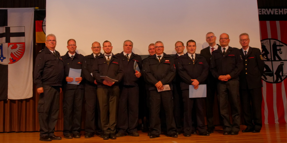 Es ist alles fast wie immer: die Stadthalle, alle Einheiten der Freiwilligen Feuerwehr der Stadt Rheinbach, Gäste aus Rat und Verwaltung, von der Bundeswehr sowie von den befreundeten Hilfsorganisationen, der offizielle Teil mit Ehrungen, Beförderungen, Ernennungen und dem Jahresrückblick.