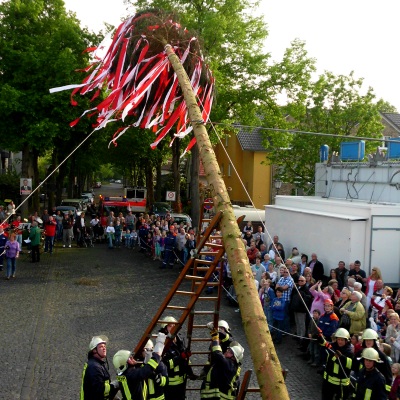 Traditionell wird in weiten Teilen des Rheinlandes am Vorabend des ersten Mai ein Stadt- bzw. Dorfmaibaum gestellt.