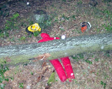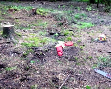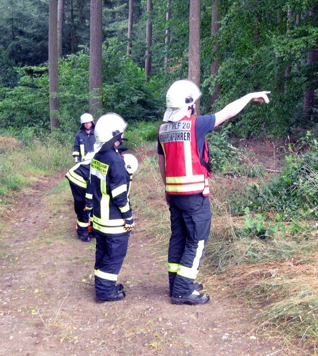 Im Wald angekommen, wurden die Einsatzkräfte von einem hektisch herumlaufenden und winkenden Waldarbeiter erwartet. Nachdem dieser dem Einsatzleiter den Einsatzort gezeigt hatte, wurde er in die Obhut einiger Feuerwehrleute gegeben.