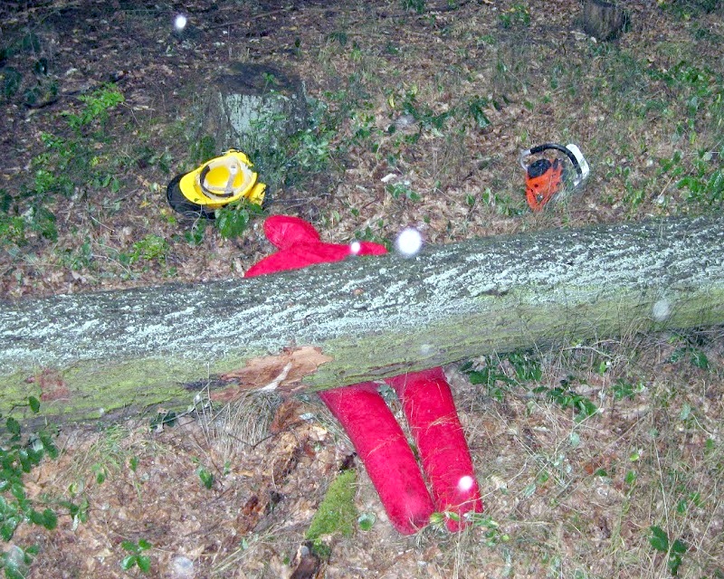Dem Einsatzleiter stellte sich nun folgende Lage: „Waldarbeiter waren damit beschäftigt, Windbruch zu beseitigen. Ein Waldarbeiter trennte einen Baum vom Wurzelteller ab und übersah dabei den hinter dem Wurzelteller stehenden Kollegen, der nun bis zum Oberkörper unter dem Wurzelteller eingeklemmt ist.“