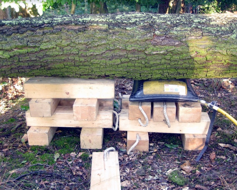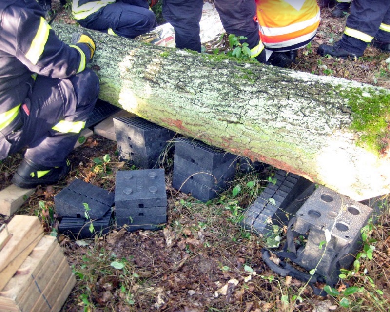 Die technische Rettung wurde vom Einsatzleiter vorgegeben und das erforderliche Fahrzeug so nah wie möglich an die Einsatzstelle befohlen, was in Waldgebieten teilweise sehr schwierig ist. Nachdem der Rettungsdienst den Verunfallten medizinisch versorgt hatte, begann die Feuerwehr mit der patientenschonenden Rettung. Hebekissen und Unterbaumaterial wurden umgehend zum Einsatz gebracht und nach ca. 15 Minuten war der Verunfallte befreit und konnte dem Rettungsdienst übergeben werden.