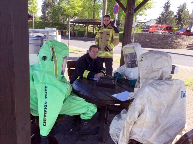 Die Abkürzung „ABC“ steht hierbei für atomare, biologische und chemische Stoffe. Geübt wurden daher Einsätze mit Gefahrstoffen.