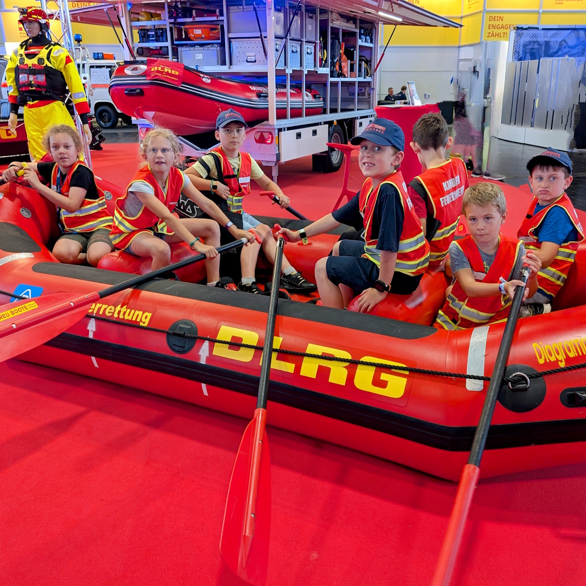 Vor Ort wurden unsere Kinderfeuerwehrmitglieder vom VdF NRW empfangen. Dann startete ein tolles Rahmenprogramm für die Kinder auf der Messe: