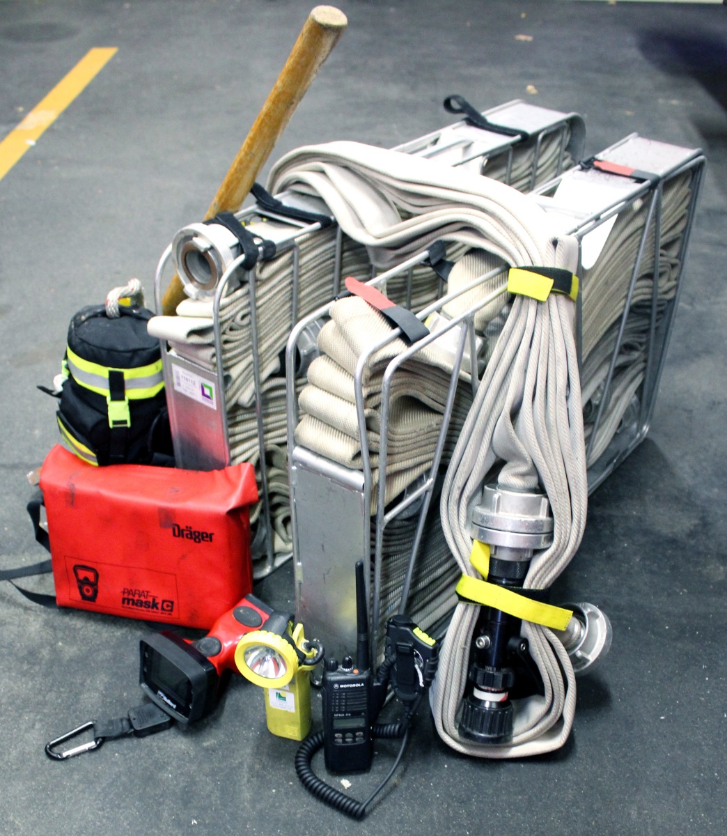 Insgesamt wiegt die Ausrüstung eines Atemschutzgeräteträgers ca. 16 Kilogramm. Hinzu kommen dann noch Ausrüstungsgegenstände wie Schlauchtragekörbe, Axt, Strahlrohr oder auch Wärmebildkamera.