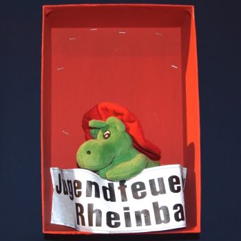 Heute öffnen wir das Türchen Nummer 14, und siehe da: hinter dem Türchen versteckt sich ein kleiner Feuerwehrdrache mit Kleidung der Jugendfeuerwehr.