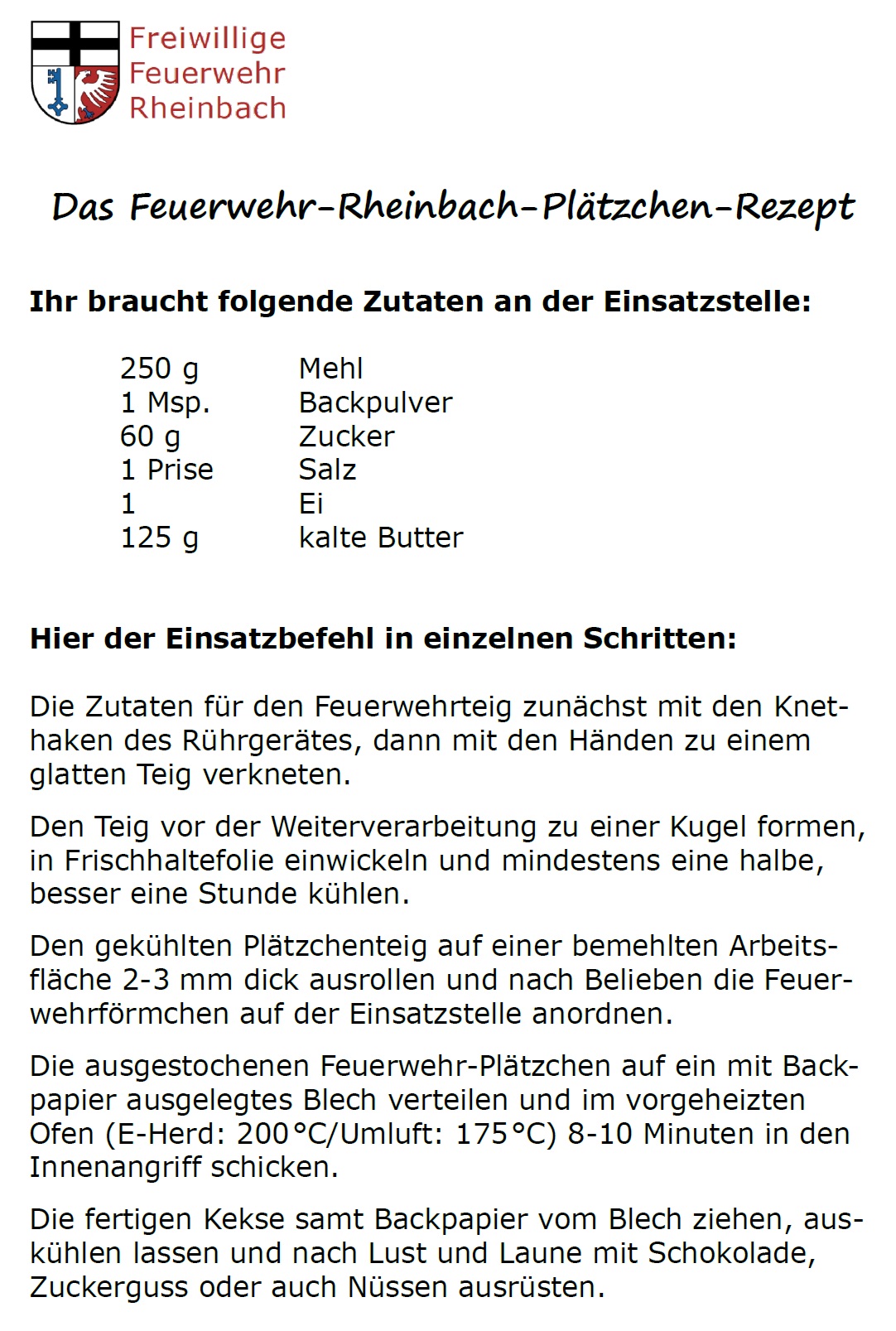 Wir haben euch einmal das „Feuerwehr-Rheinbach-Plätzchen-Rezept“ online gestellt und wünschen viel Spaß beim Nachbacken!