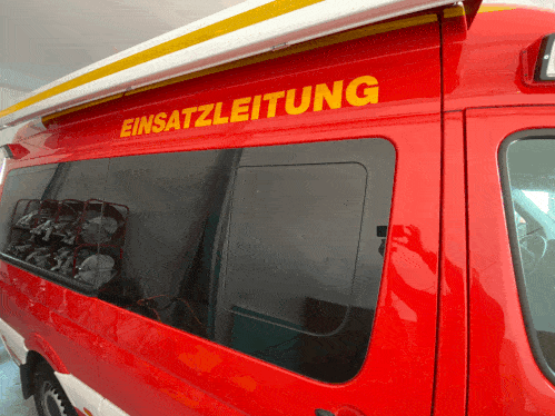 Die nächste Tür öffnet sich und es ist die zum Funkraum des Rheinbacher Einsatzleitwagens. Hier seht ihr den Arbeitsraum, von dem aus gefunkt wird und die Lage für den Einsatzleiter dargestellt wird.