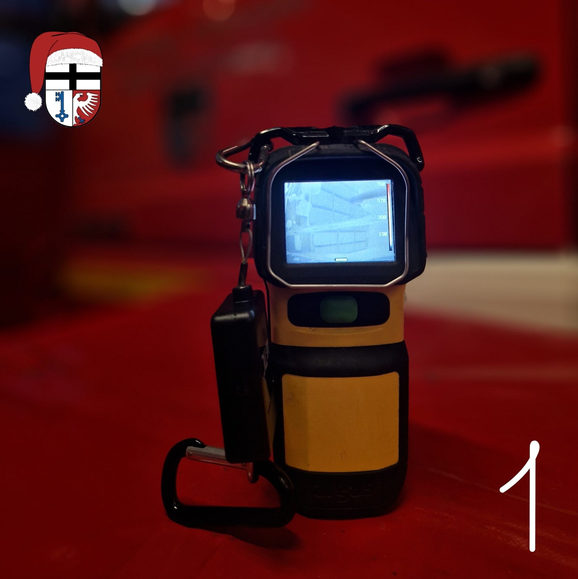 Hier seht ihr eine unserer Wärmebildkameras, welche im Einsatz durch den vorgehenden Trupp z.B. zur Lokalisierung des Brandherdes verwendet wird. Sie erleichtert den Trupps die Arbeit in stark verrauchten Gebäuden sehr, denn die Orientierung ist bei dichtem Rauch äußerst anspruchsvoll.