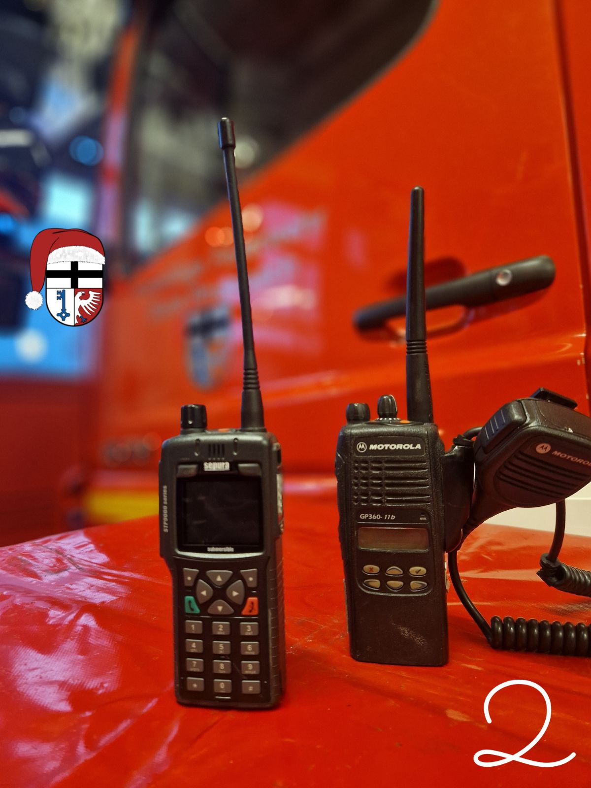 Das linke Gerät ist ein Digitalfunkgerät. Solche Geräte benutzen wir für die Kommunikation mit der Leitstelle und als Kanal für unsere Führungskräfte.