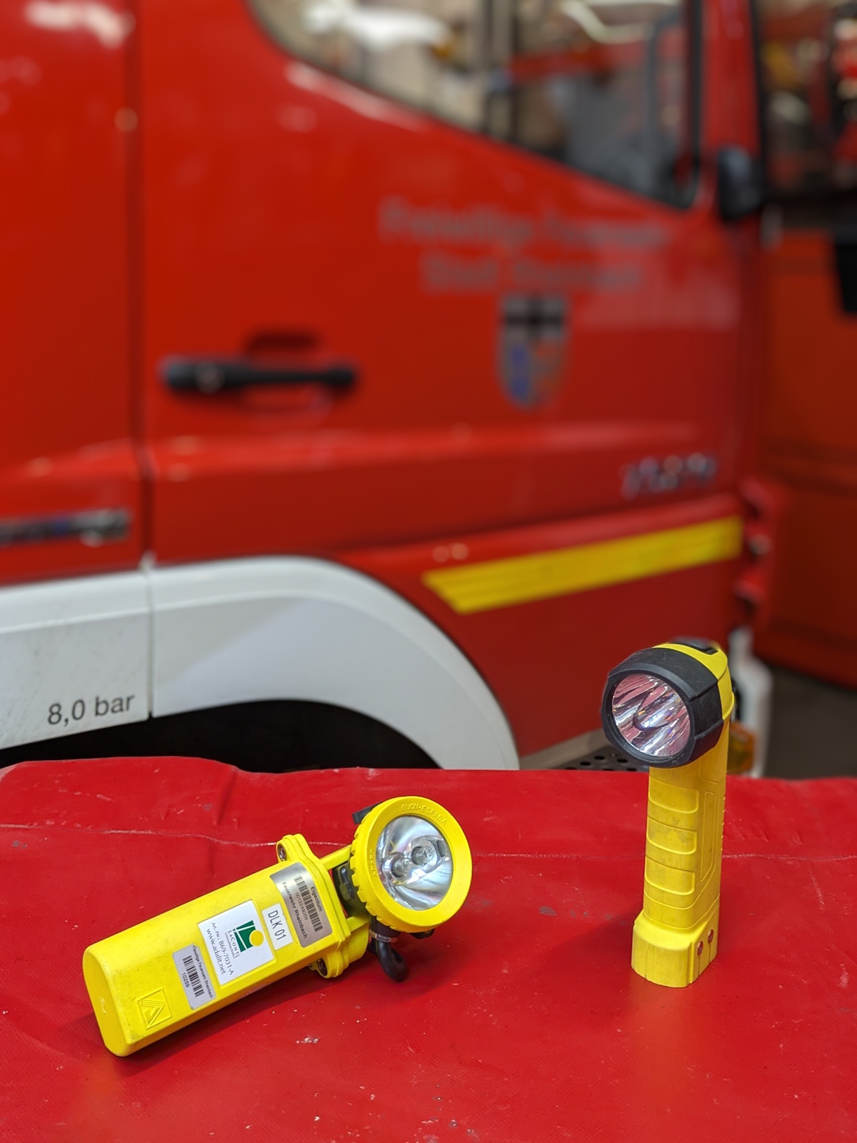 Relativ unspektakulär, aber dennoch wichtig: derartige Lampen dienen uns im Einsatz als kleine, tragbare Lichtquelle.