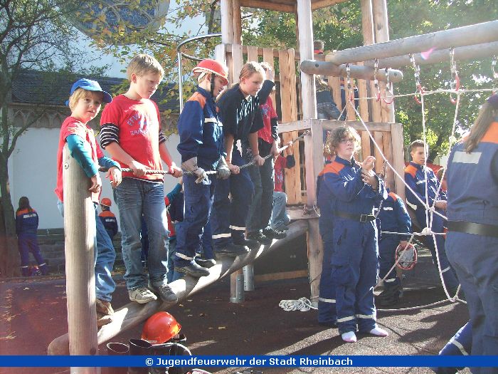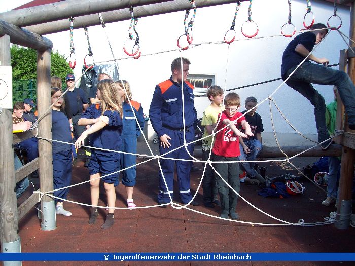 Das Spiel ohne Grenzen fand dieses Jahr rund um das Gerätehaus und die Grundschule in Flerzheim statt. Viele tolle Spiele wurden geboten, wie etwa "Fässerrollen" oder aus Saugschläuchen einen Ring zu bauen.