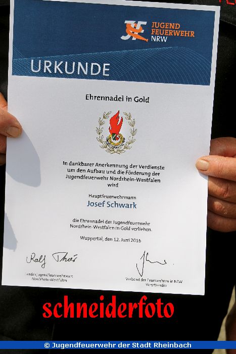 Der Tag 2016 fand in diesem Jahr in Oberdrees statt. Stadtjugendfeuerwehrwart Josef Schwark wurde durch die JF NRW geehrt.