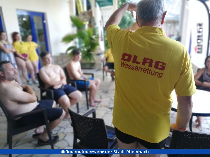 Herr Lorenz Schmidt, von der DLRG des AZ Rheinbach begrüßte die Jugendlichen und ihre Betreuer im Foyer, bevor es dann hieß: Umziehen und duschen! Anschließend erhielten die Kinder einen kurzen Einblick in die Organisation der DLRG und dann wurde es auch schon ernst.