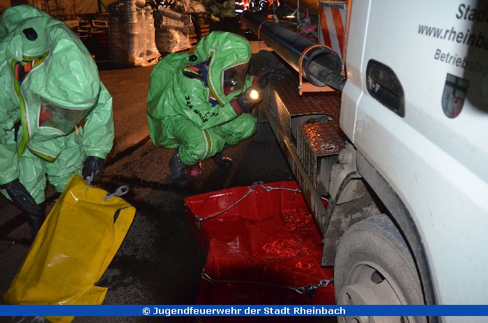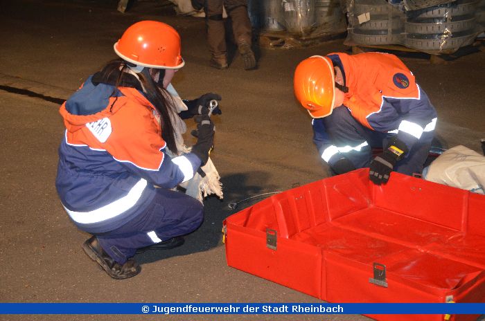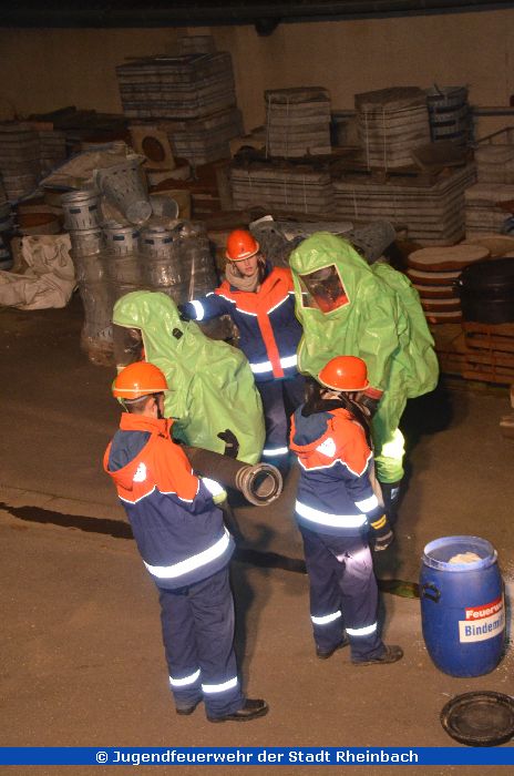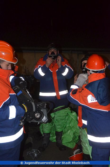 Die Jahresabschlussübung! Angenommen wurde, dass ein Kleintransporter eine Flüssigkeit aus dem Tank verlor. Alle arbeiteten Hand in Hand, rüsteten die vorgehenden Trupps mit (nachgebauten) Atemschutzgeräten und Übungsschutzanzügen aus. Zudem wurde ein Dekonplatz aufgebaut.