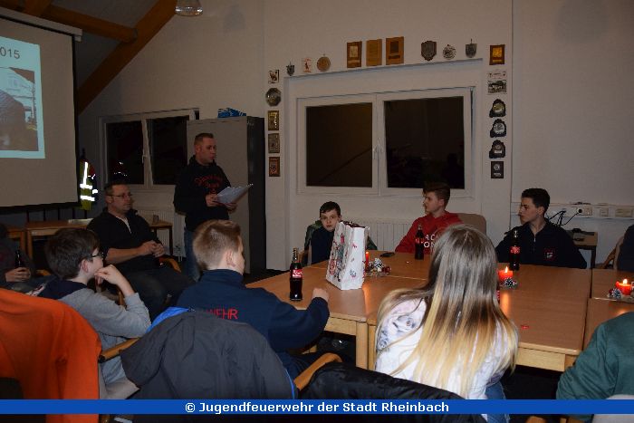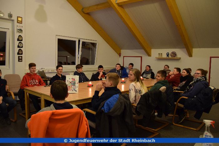 In der letzten Jugendgruppenstunde in diesem Jahr wurde traditionell die Weihnachtsfeier der Jugendfeuerwehr Rheinbach Kern veranstaltet. Bei weihnachtlicher Dekoration wurde das Jahr mit einer Bildershow Revue passieren gelassen. Dazu gab es Limonade und leckere Pizza.