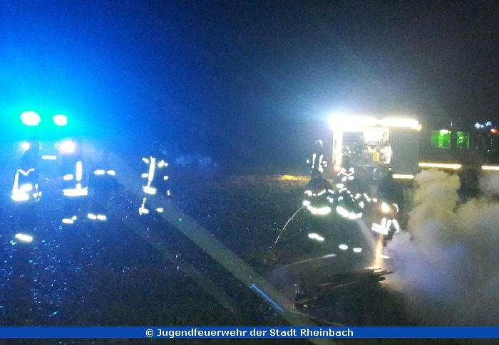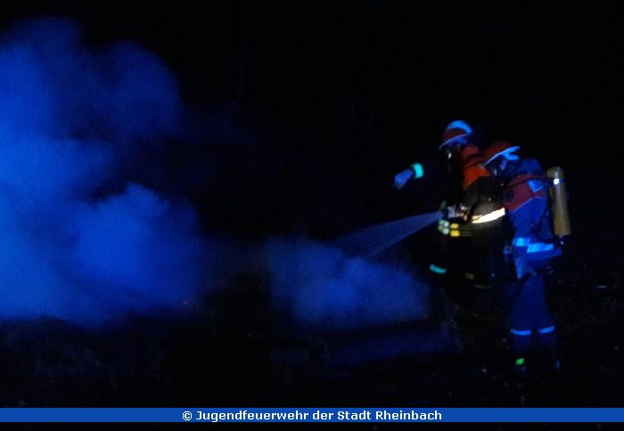 Für 22 Uhr hatten die Betreuer eine Übung vorbereitet, damit die Gruppe sehen konnte, wobei es bei der Feuerwehr geht. Durch das echte Feuer, die Anfahrt mit dem Wormersdorfer HLF 10 sowie die Nachbauten von Atemschutzgeräten wurde alles ziemlich realitätsnah gestaltet. Im Anschluss konnte bei Lagerfeuer und warmem Kakao wieder abgespannt werden. Die Gruppe hat die Nacht im Schulungsraum des Gerätehauses Wormersdorf übernachtet. Am Morgen konnten die Jugendlichen nach gemeinsamen Frühstück und Aufräumen nach Hause fahren.