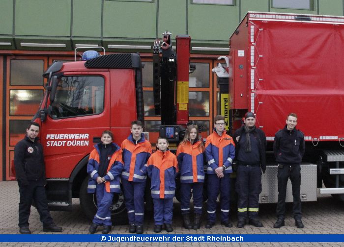 Mitglieder der Jugendfeuerwehr Wormersdorf bei der Feuerwehr Düren.