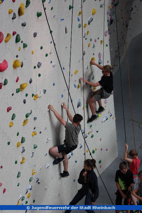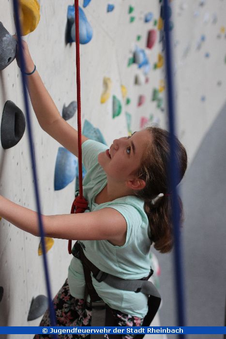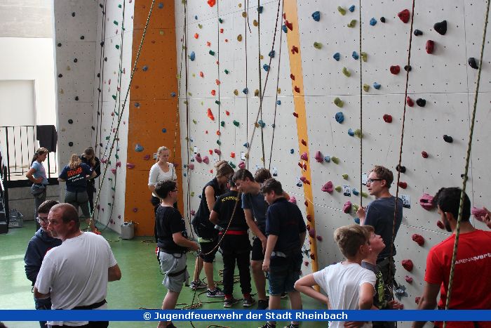 Nachdem Kinder und Betreuer die Nacht bei klarem Himmel in den Zelten verbringen konnten, startete die ganze Truppe am nächsten Tag zu einem Ausflug in die Kletterhalle „Arena Vertikal“ nach Troisdorf-Spich. Hier waren Mut und sportlicher Ehrgeiz gefragt. Nach einer gründlichen Einweisung erklommen die Kinder bis zu 14 Meter hohe Kletterwände oder probten ihre Zielsicherheit beim Bogenschießen.