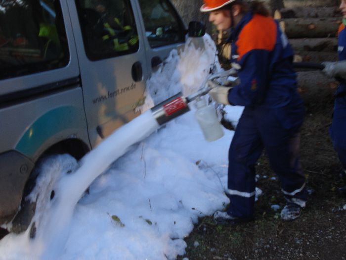 Von Zeit zu Zeit wird auch mit anderen Löschmitteln geübt, so wie beispielsweise hier bei einer Schaumübung!